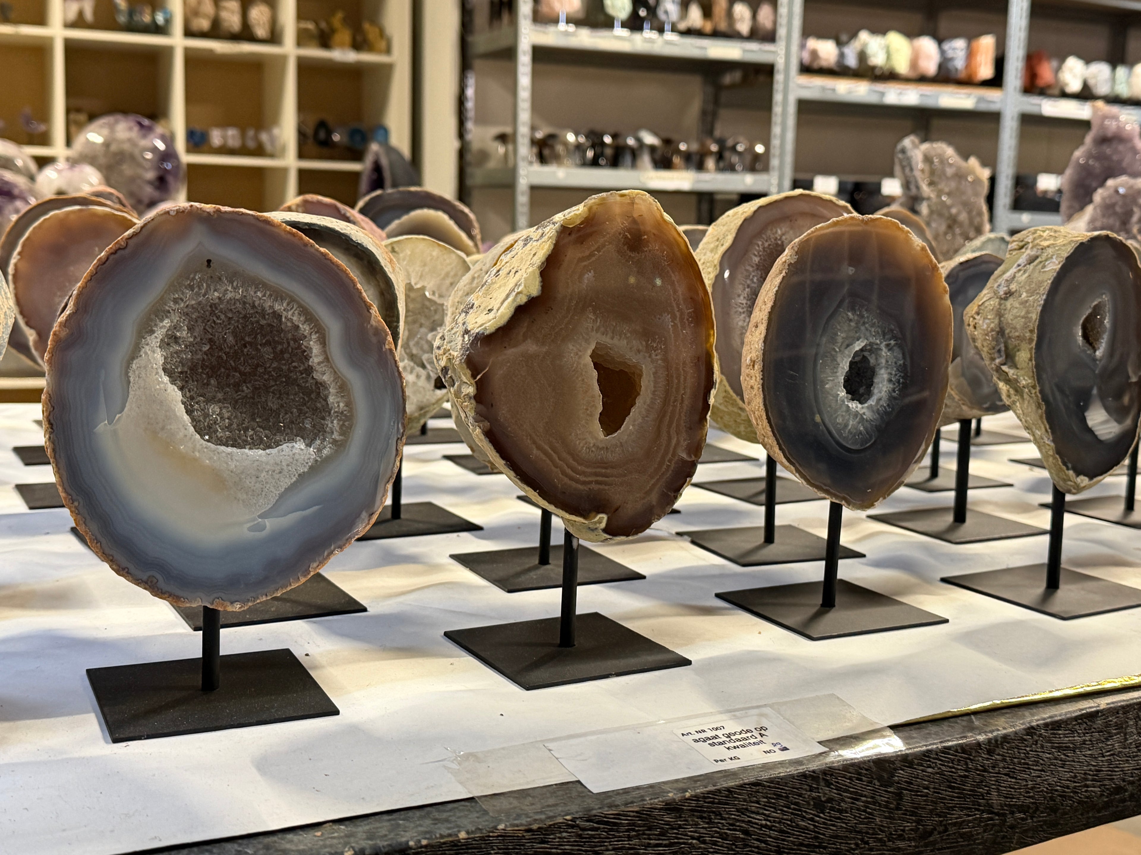 AanbiedingPrachtige Agaat Geode Set op Standaard Klein
