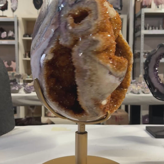 Zeer Uniek Citrien Ei op Draaibare Metalen Standaard – 27,54 kg (alleen afhalen)