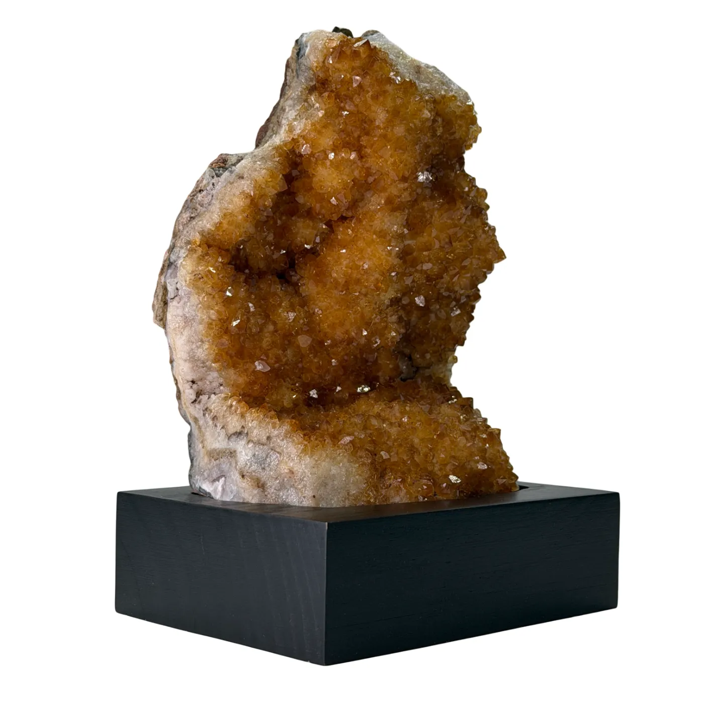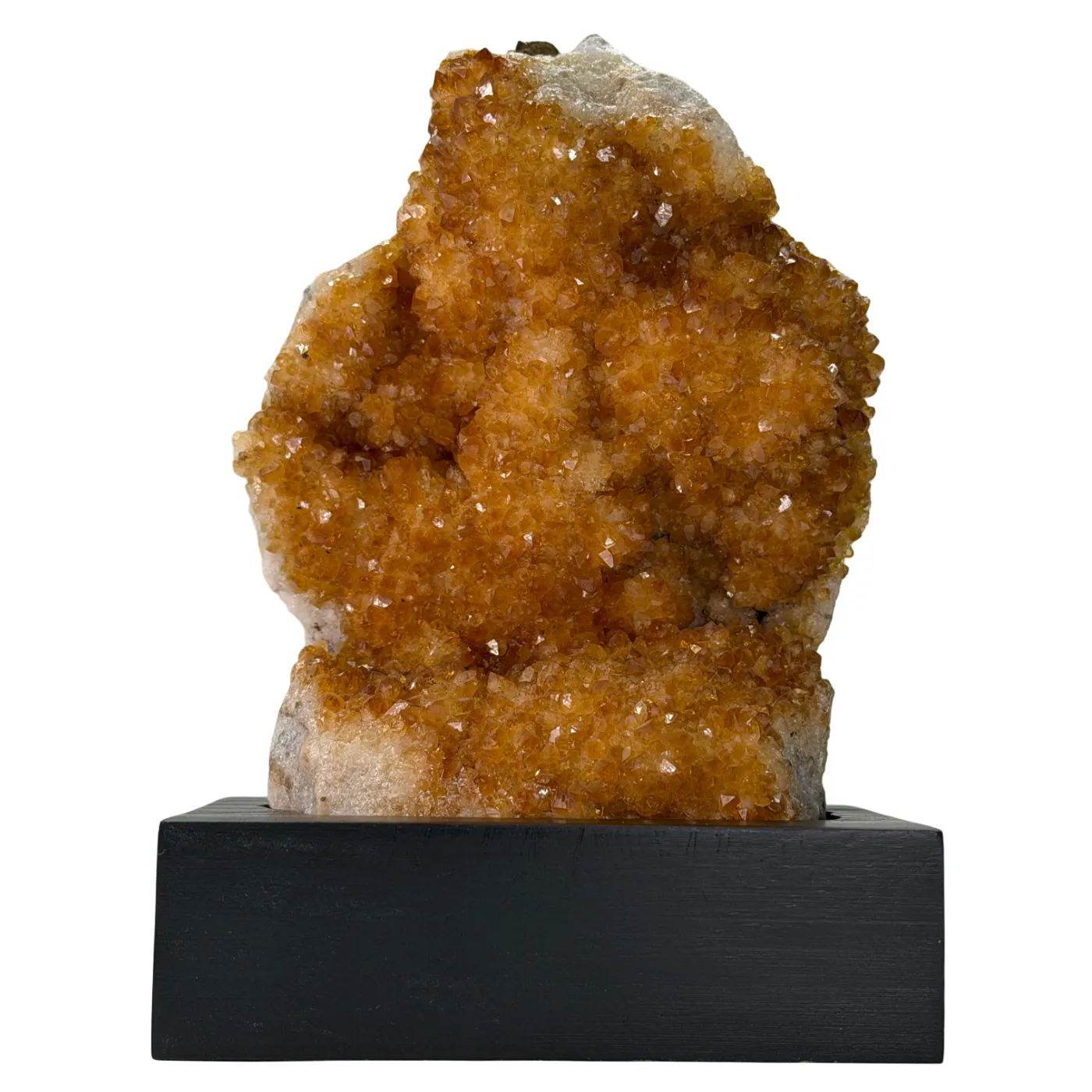 De natuurlijke kristalstructuren in combinatie met de stevige houten voet maken deze citrien tot een stijlvolle en krachtige eyecatcher. Perfect als decoratief object voor interieur, kantoor of spirituele ruimte.