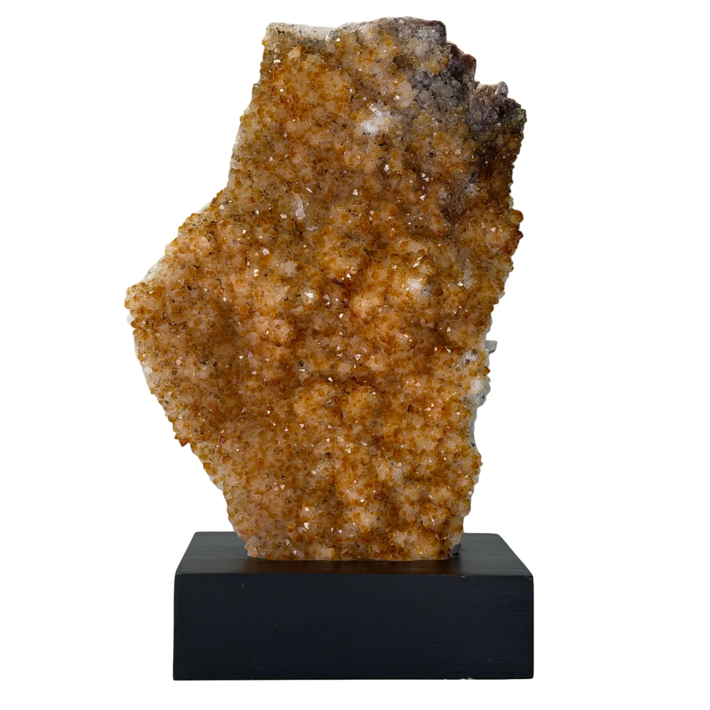 De natuurlijke kristalstructuren in combinatie met de stevige houten voet maken deze citrien tot een stijlvolle en krachtige eyecatcher. Perfect als decoratief object voor interieur, kantoor of spirituele ruimte.