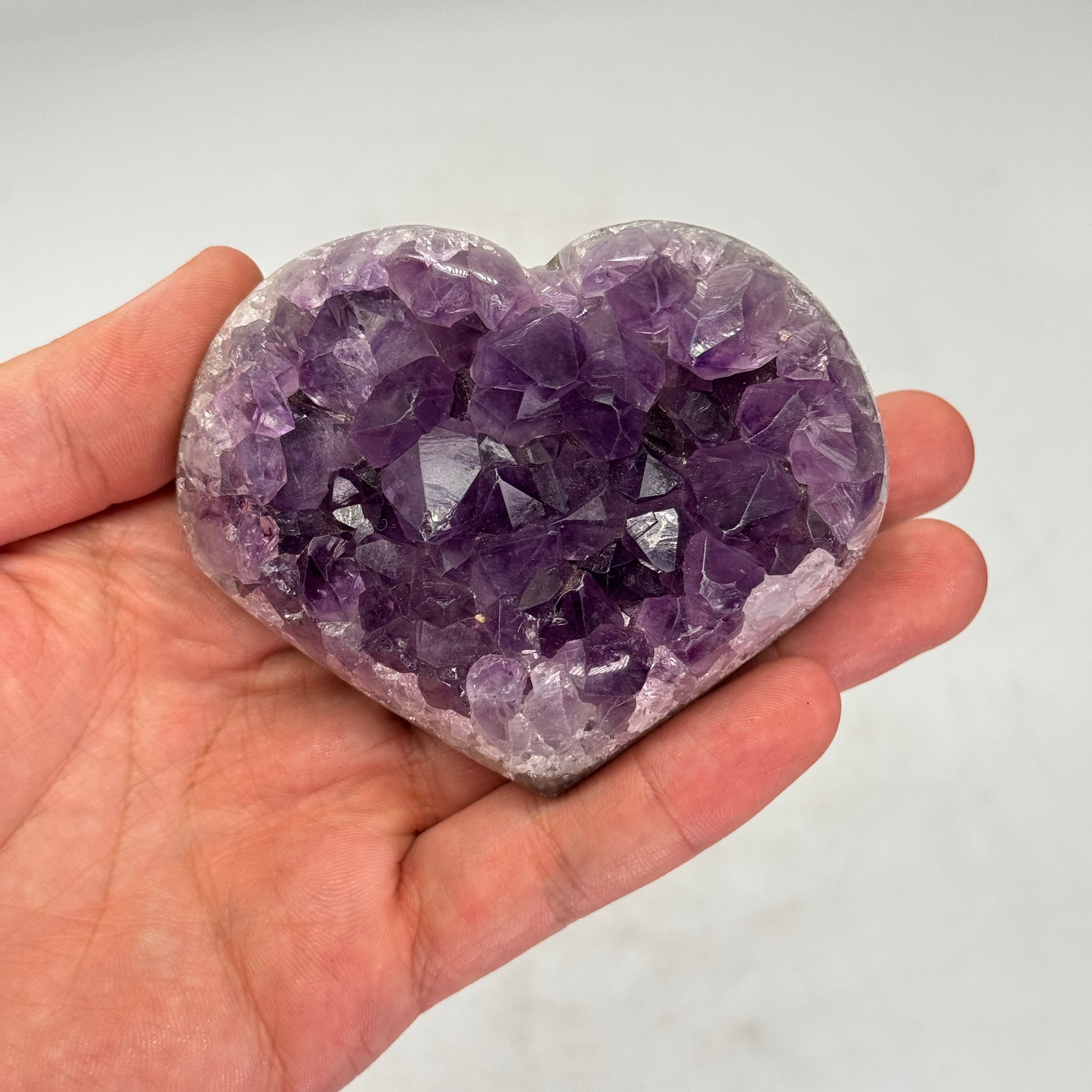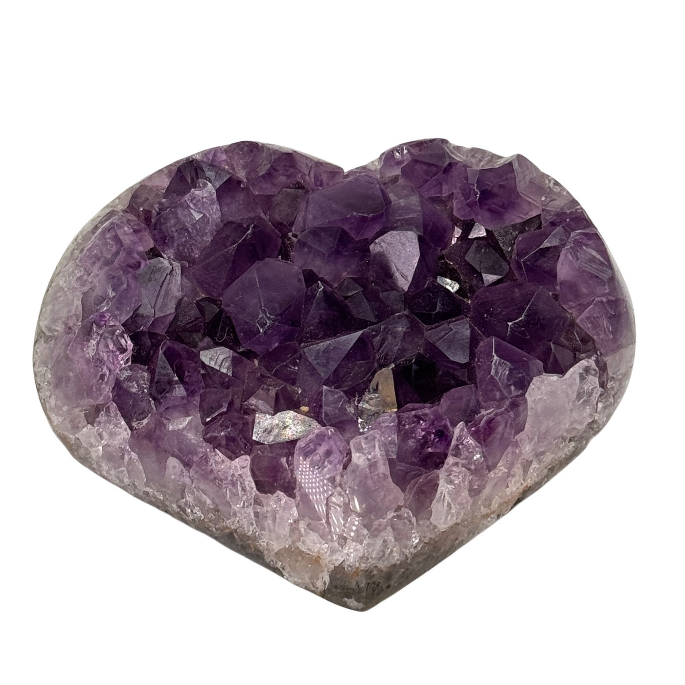 Dark purple amethyst polished in a heart shape. Size: 9x7x3 cm