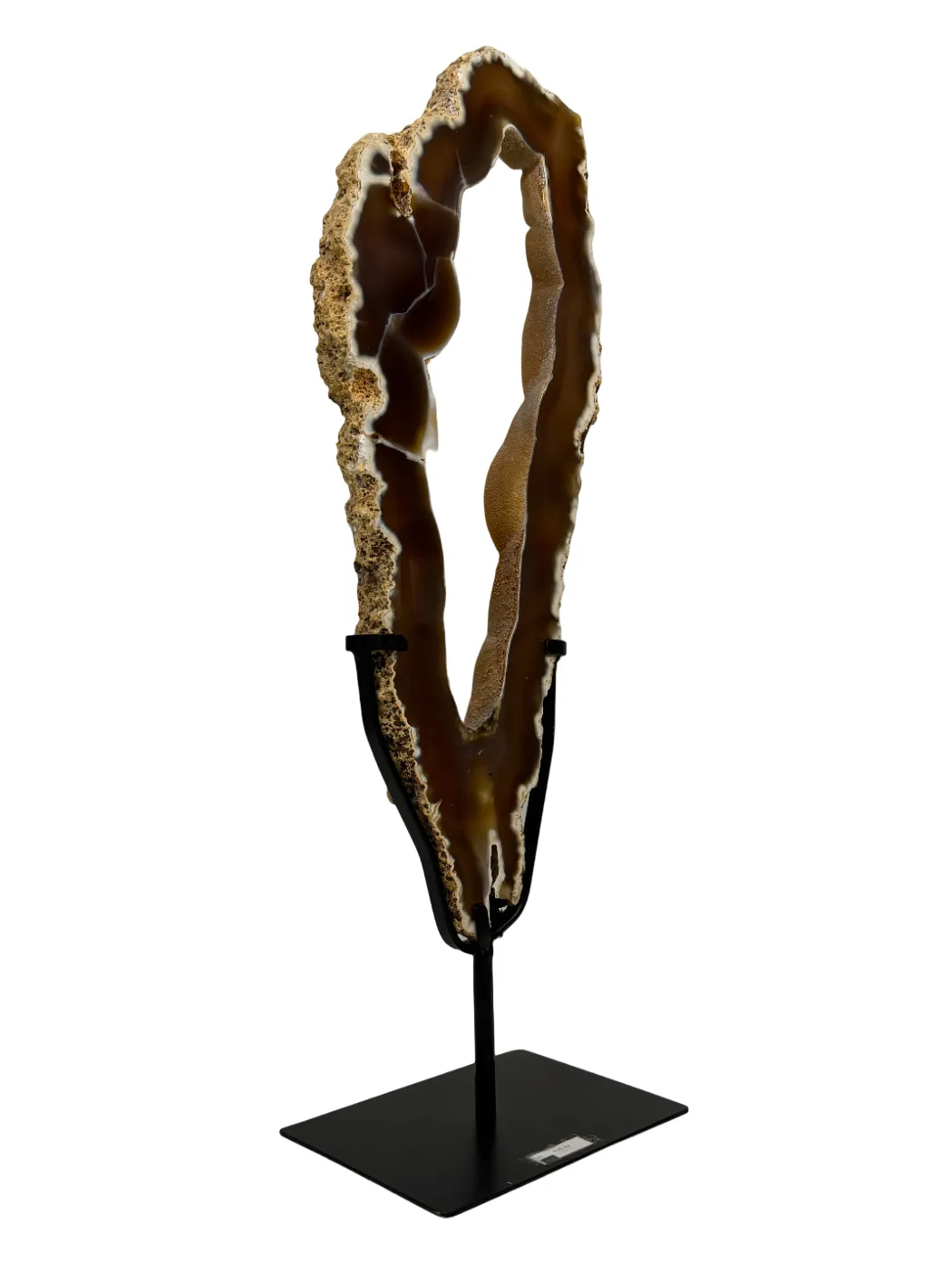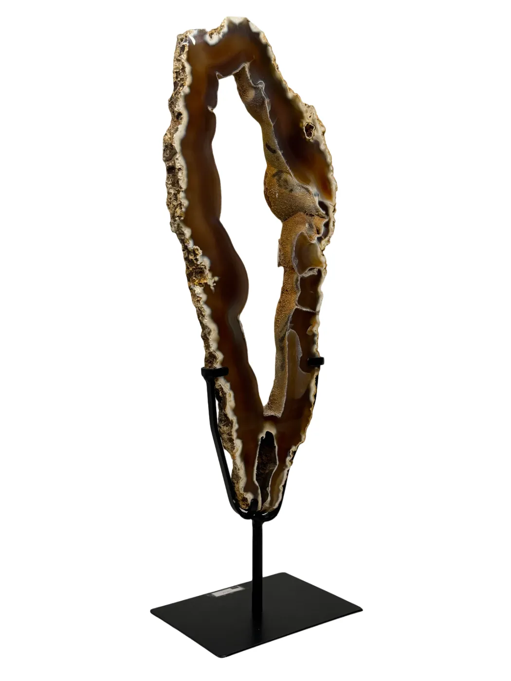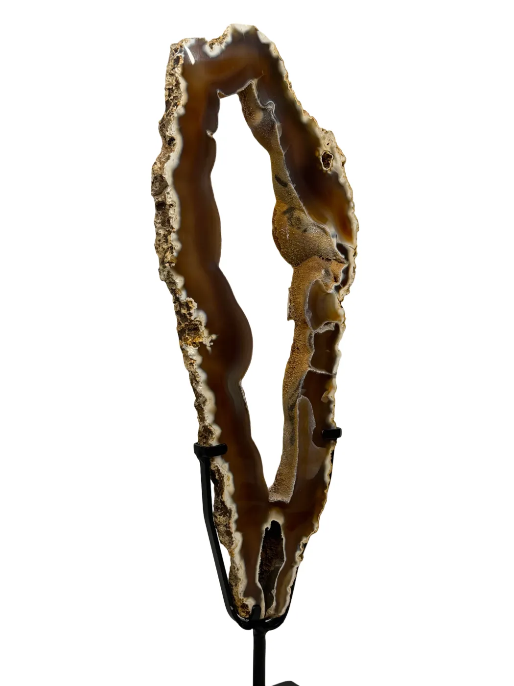 Met een gewicht van 4,16 kg en geplaatst op een stevige, elegante standaard is dit agaat portaal een echte eyecatcher. Perfect voor een interieur, showroom of spirituele ruimte waar natuurlijke schoonheid centraal staat.