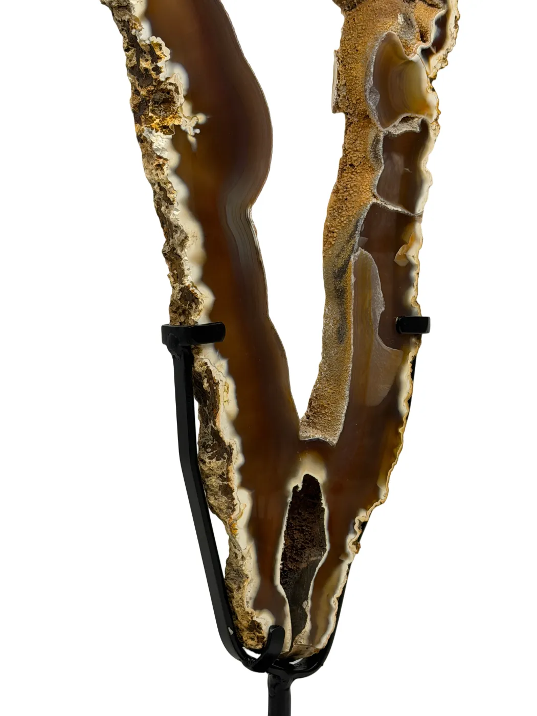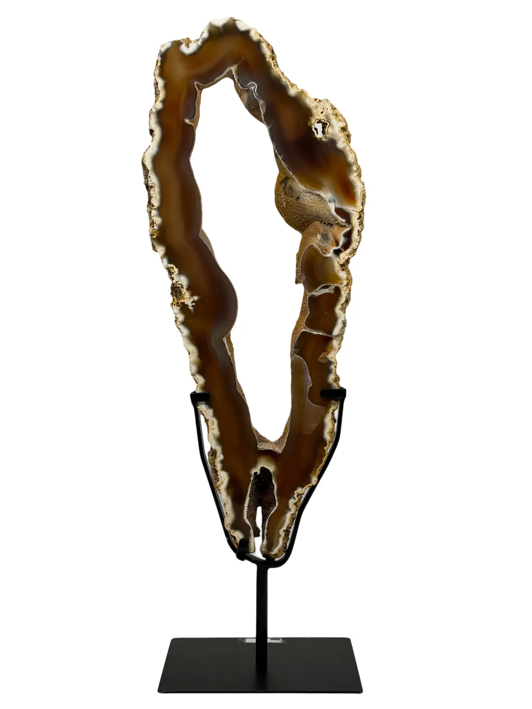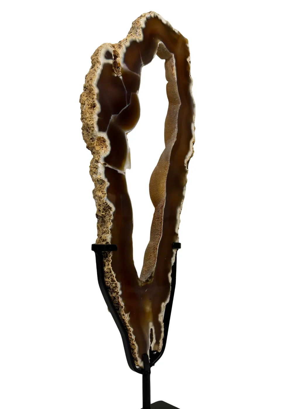 Met een gewicht van 4,16 kg en geplaatst op een stevige, elegante standaard is dit agaat portaal een echte eyecatcher. Perfect voor een interieur, showroom of spirituele ruimte waar natuurlijke schoonheid centraal staat.