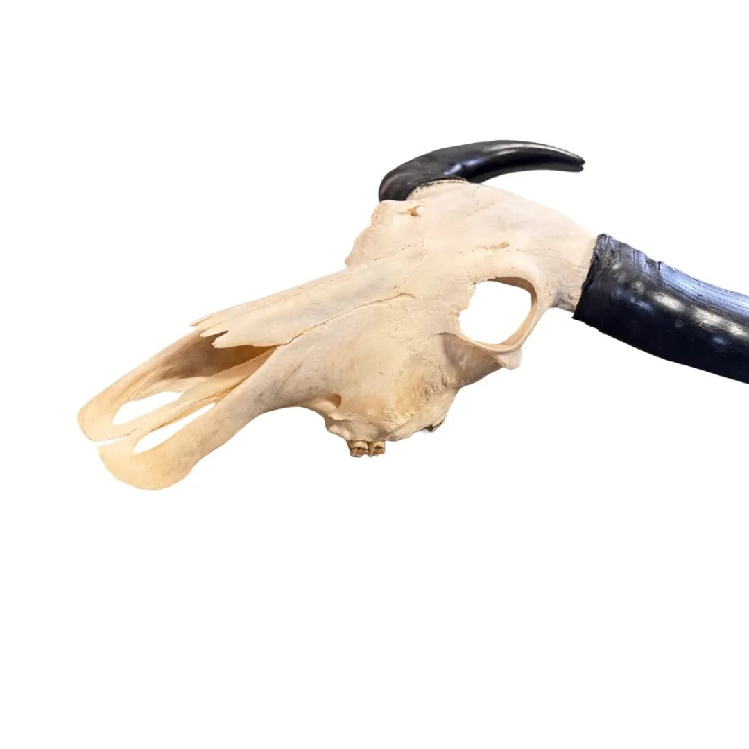 Ajoutez une touche d'audace et d'authenticité à votre intérieur avec ce véritable crâne de buffle, orné de cornes . Livré avec une corde de suspension robuste, il peut être accroché directement au mur. Il attirera tous les regards dans un intérieur rustique, bohème ou industriel .