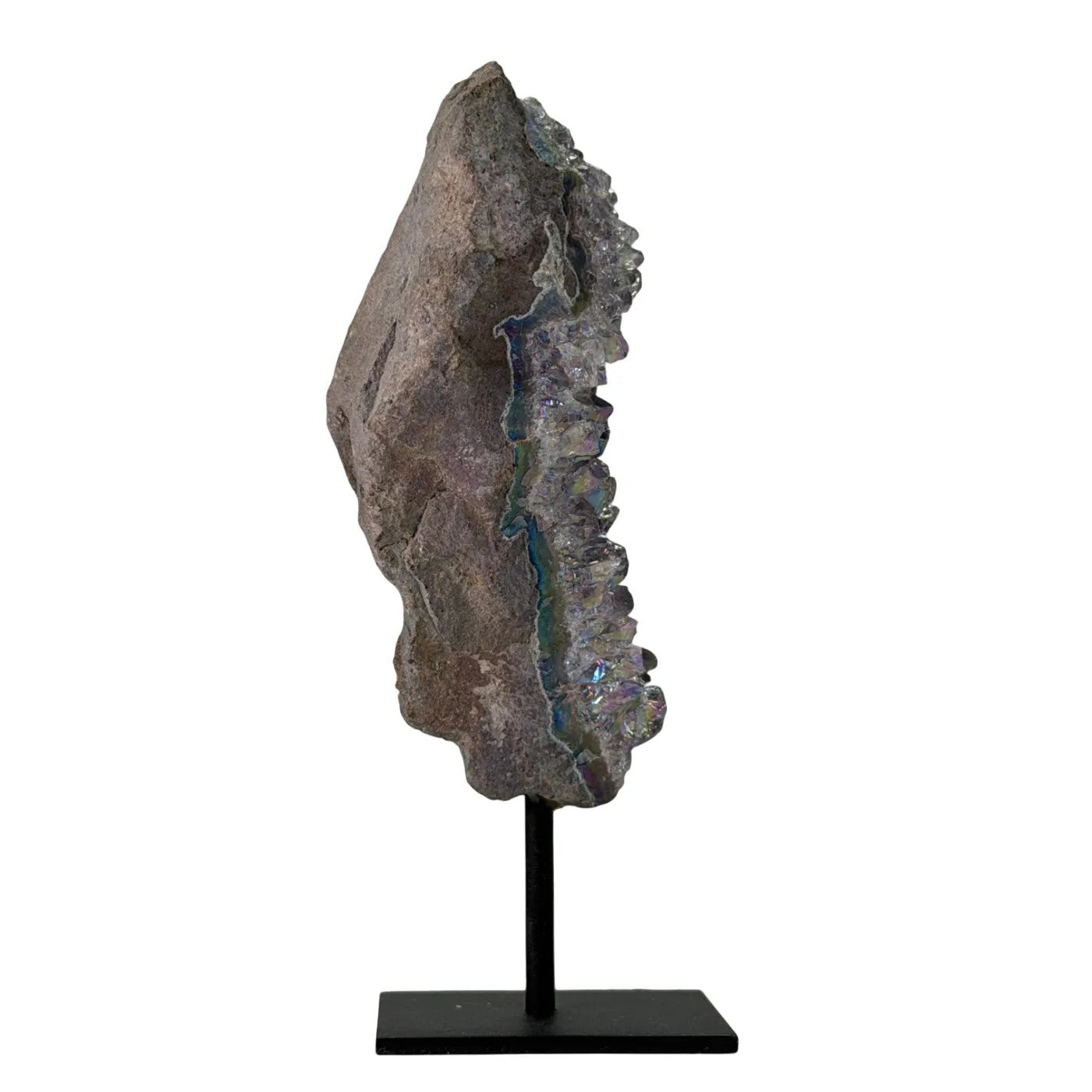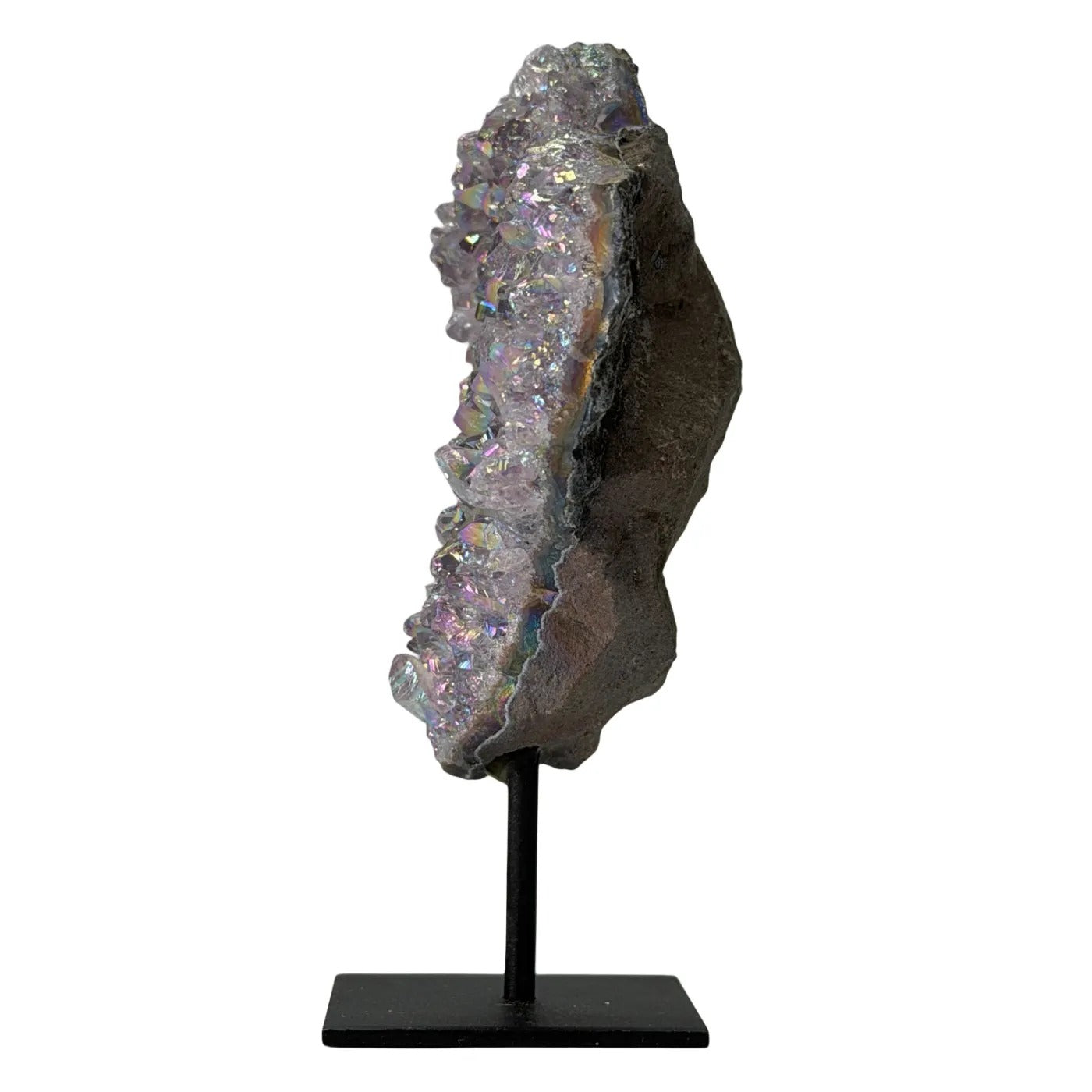 Deze kleine Angel Aura titanium kwarts op voet heeft prachtige glinsterende aurora-kleuren die schitteren en veranderen onder invloed van het licht. Dankzij de regenboogachtige glans oogt dit stuk magisch en elegant.