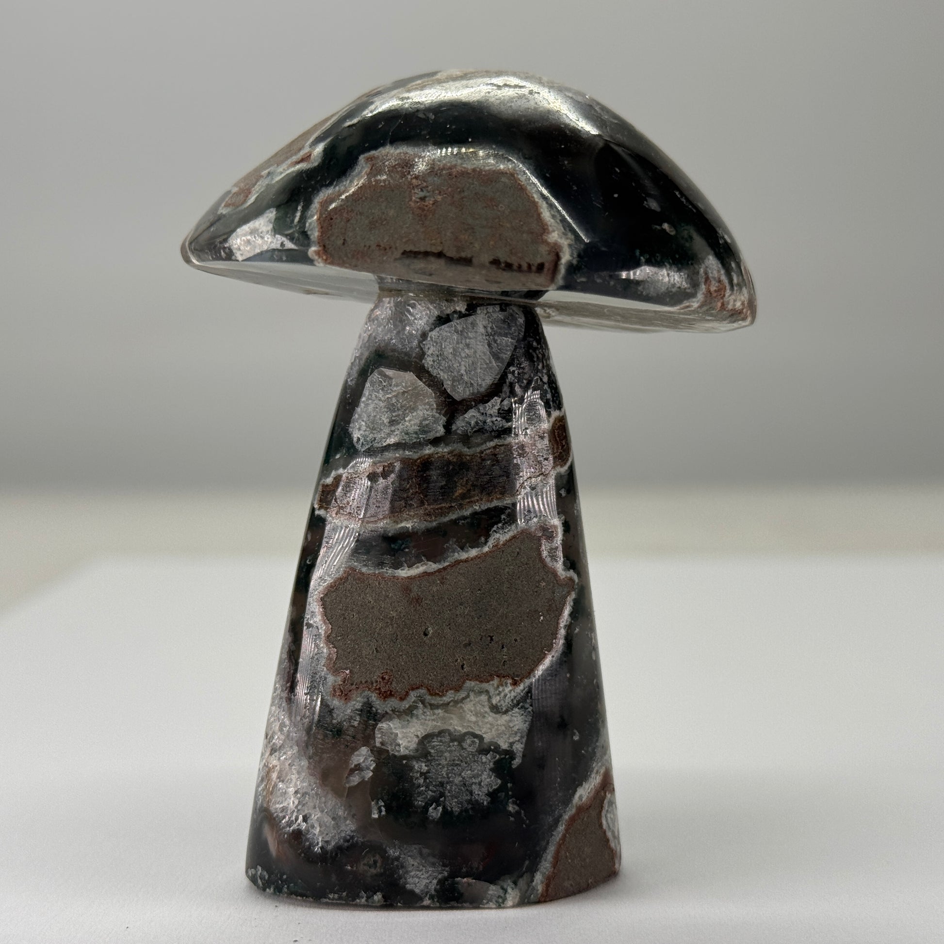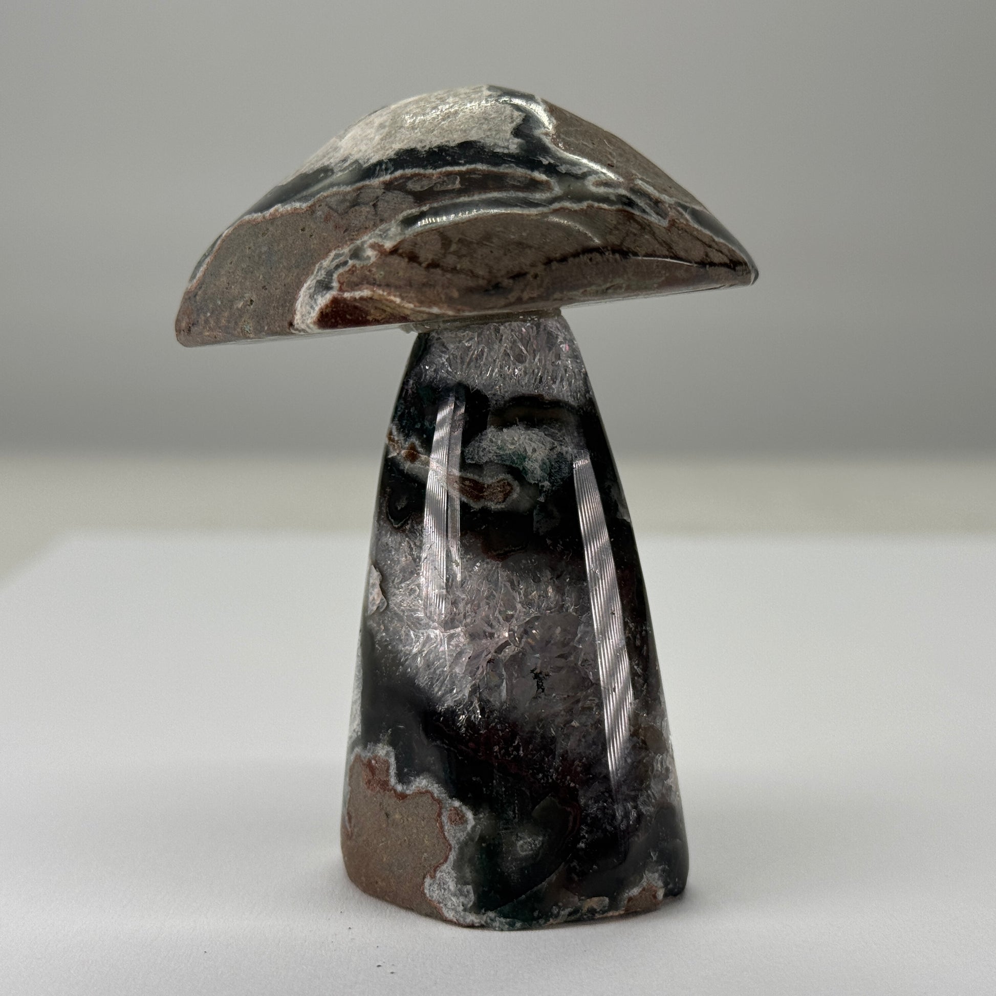 Agate taillée et polie en champignon. Cette pierre est de haute qualité et possède des formes et des couleurs naturelles d'agate. Dimensions : 10x10x13 cm