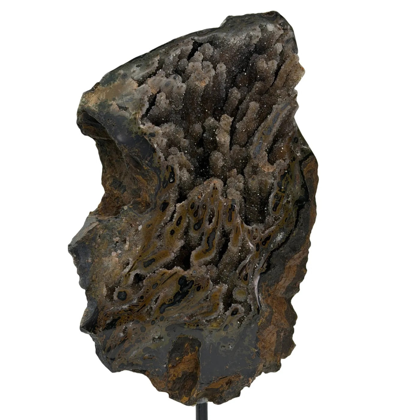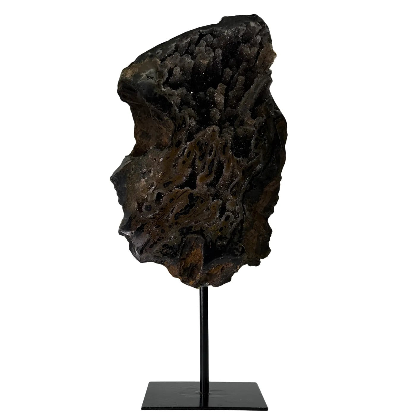 Natuurlijke Donkere Agaat Rots met Druzy op Standaard