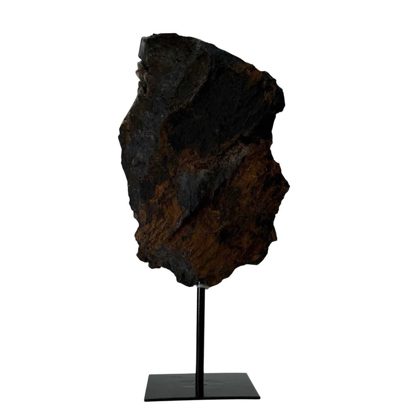 Deze prachtige natuurlijke donkere agaat rots op standaard is een krachtig en stijlvol decoratiestuk. De agaat is volledig natuurlijk en aan de voorzijde deels gepolijst, waardoor de diepe kleuren en natuurlijke structuren extra mooi zichtbaar worden.
