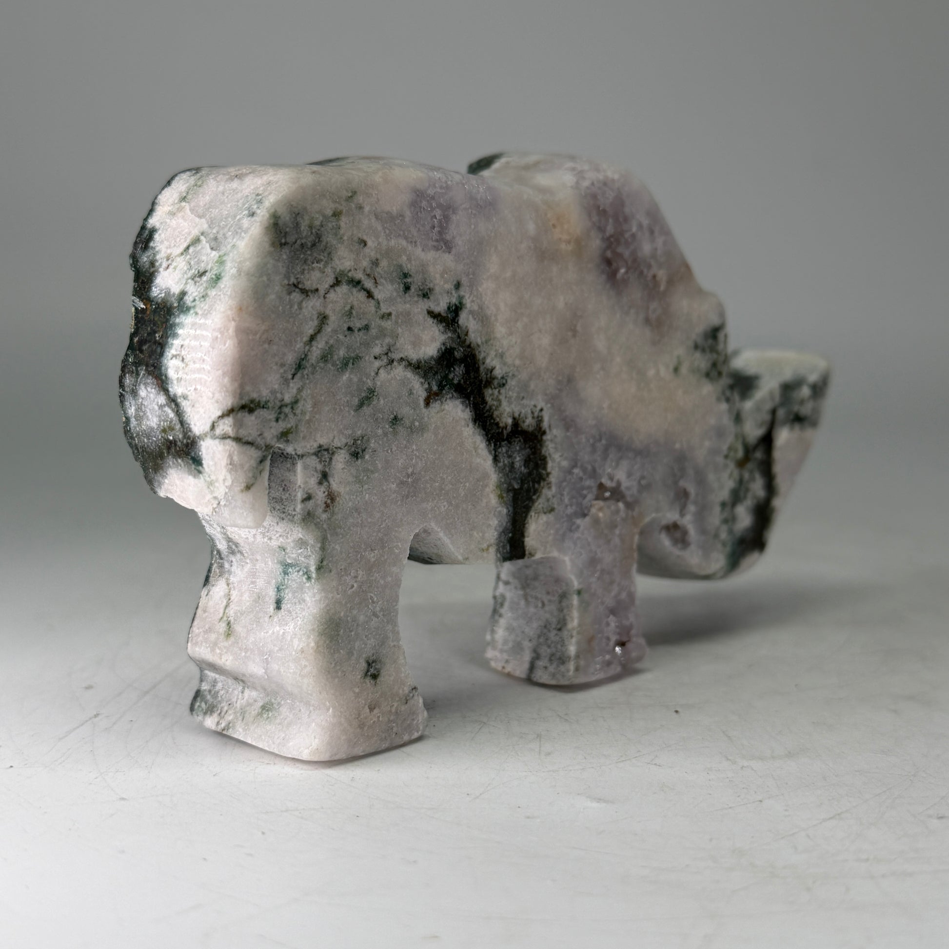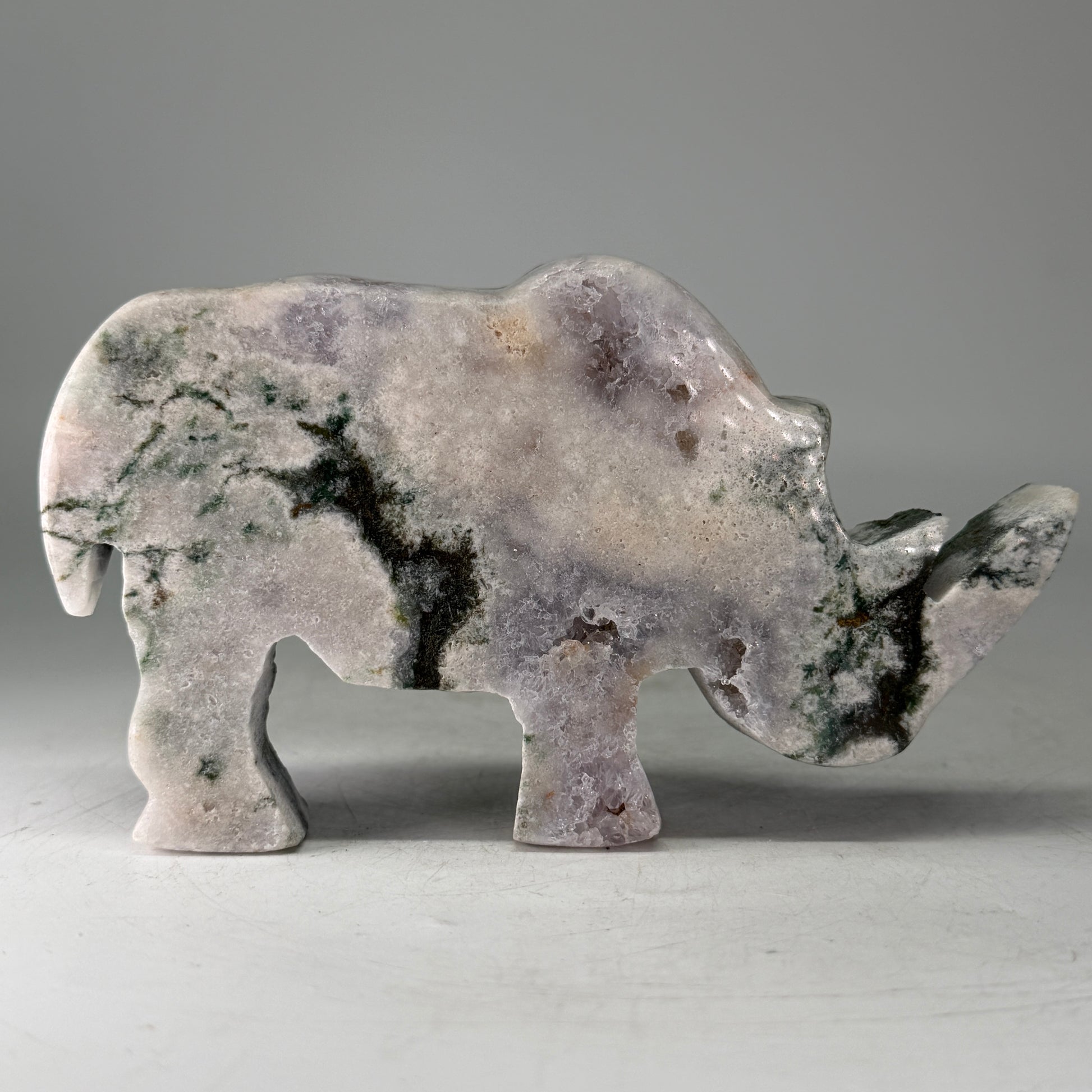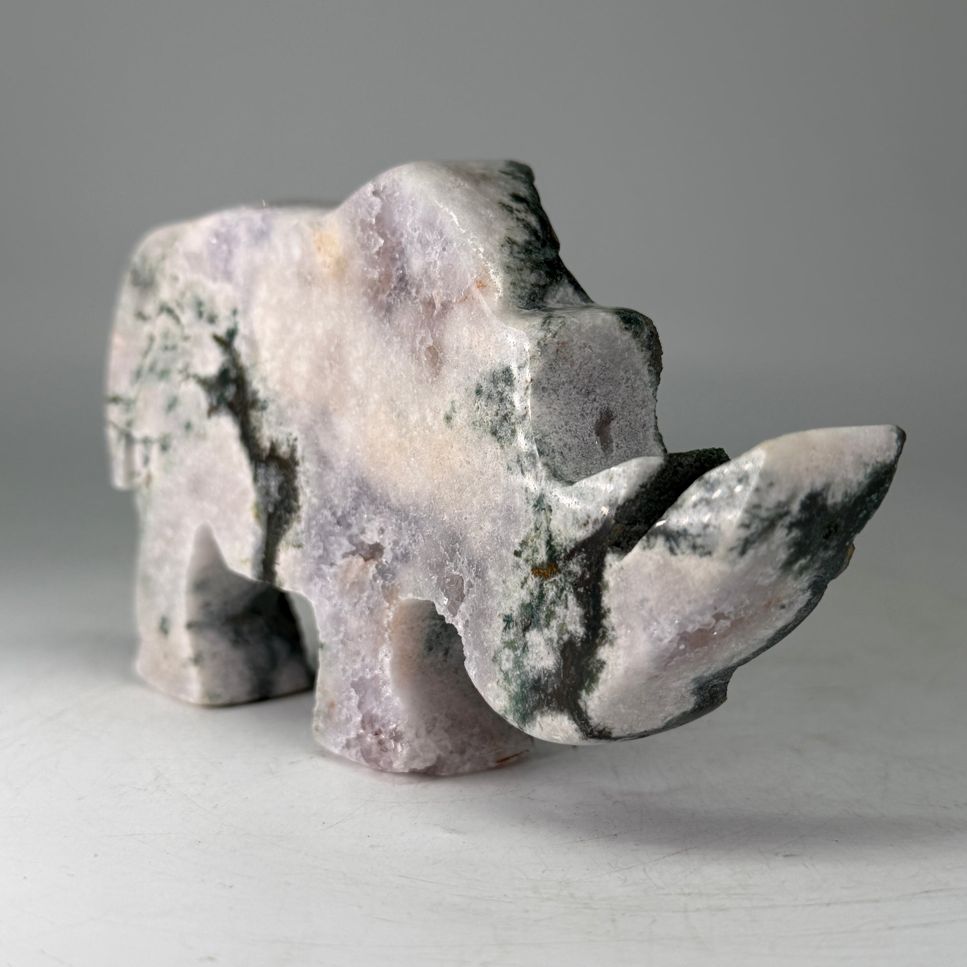 De neushoorn kan rechtop blijven staan, waardoor hij perfect is als decoratief object. Een unieke eyecatcher voor liefhebbers van edelstenen, dierfiguren en natuurlijke decoratie.