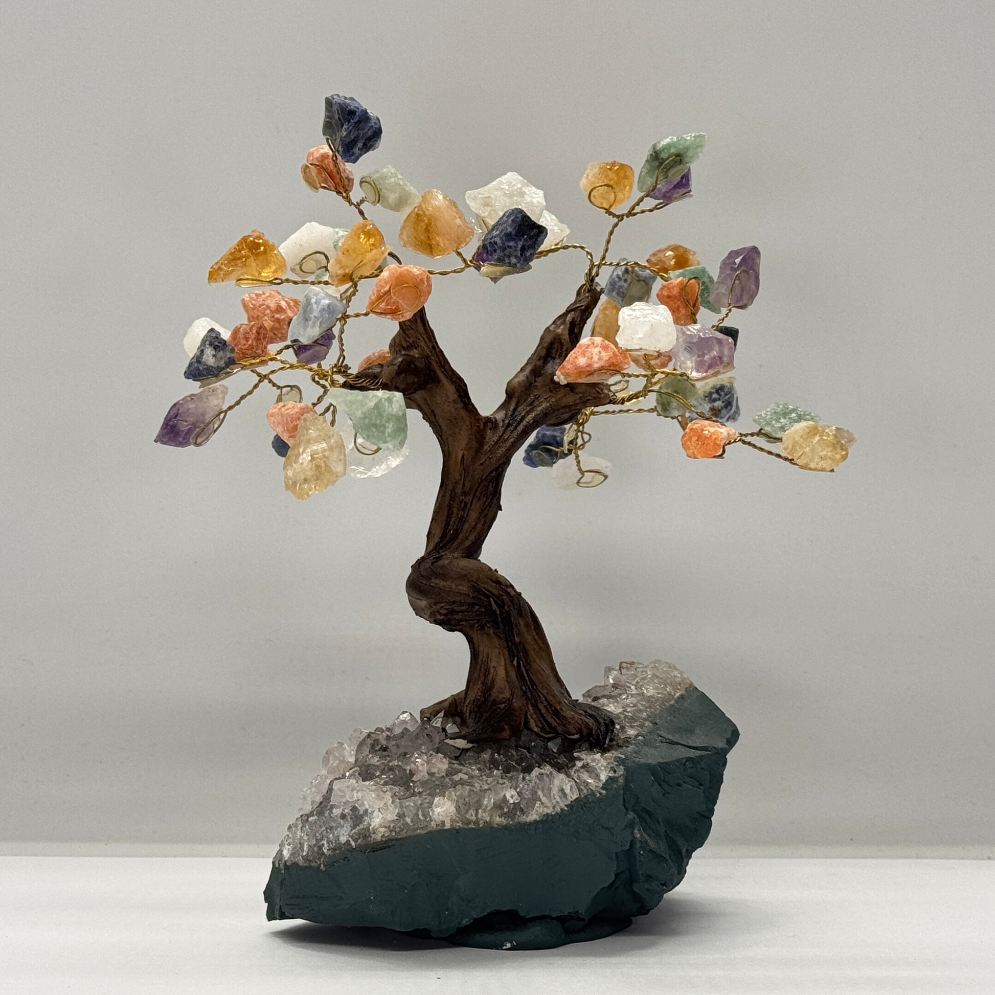 Chaque arbre est soigneusement façonné à la main à partir de pierres précieuses naturelles et est donc unique. La composition des minéraux et les couleurs varient selon la branche et l'arbre.