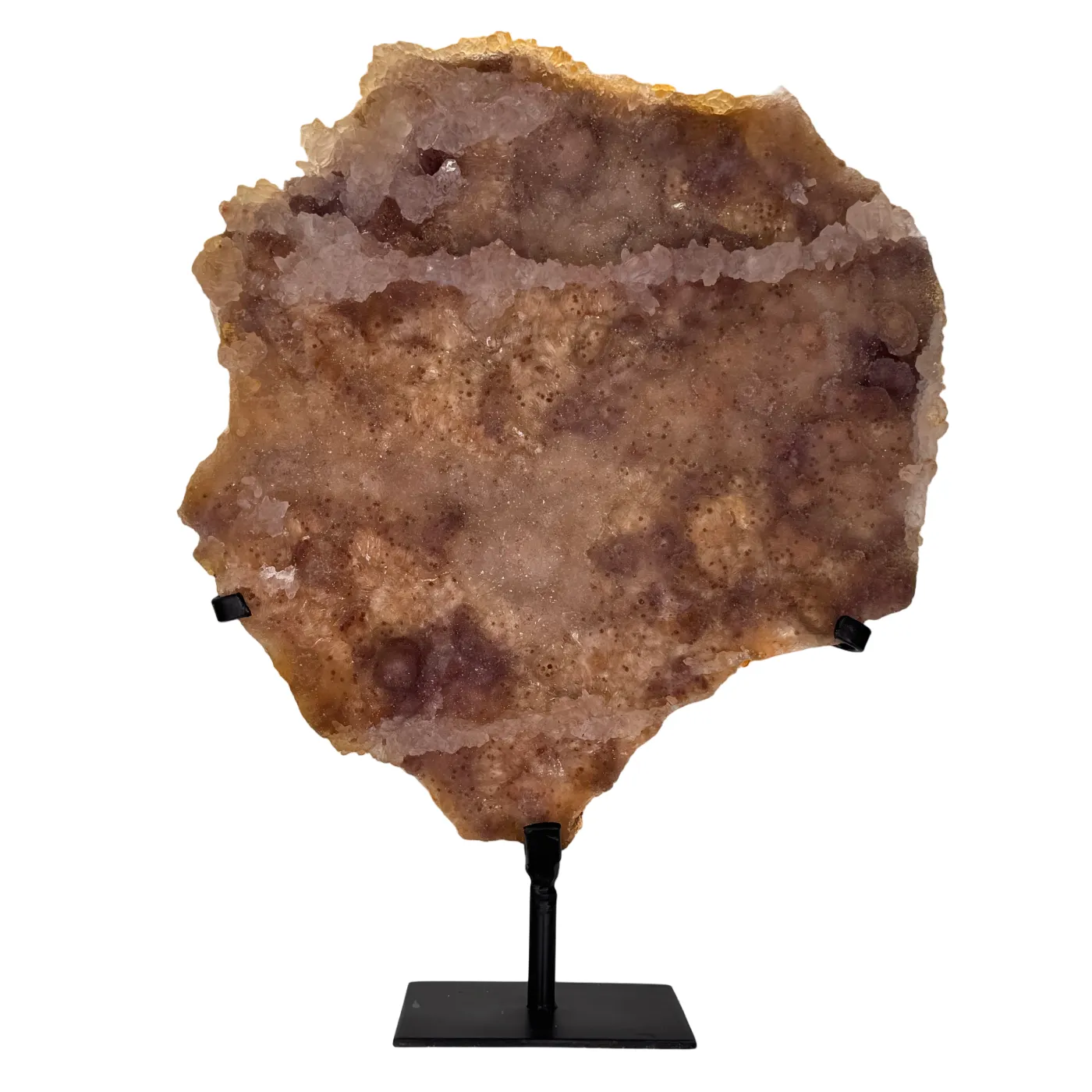 Prachtige amethist flower op metalen standaard, rechtstreeks uit Brazilië. Deze unieke stukken tonen een natuurlijke kristalvorming die lijkt op een bloem. Elke steen is volledig natuurlijk en bevat vaak een mix van verschillende mineralen zoals amethist, bergkristal, chalcedoon en calciet.