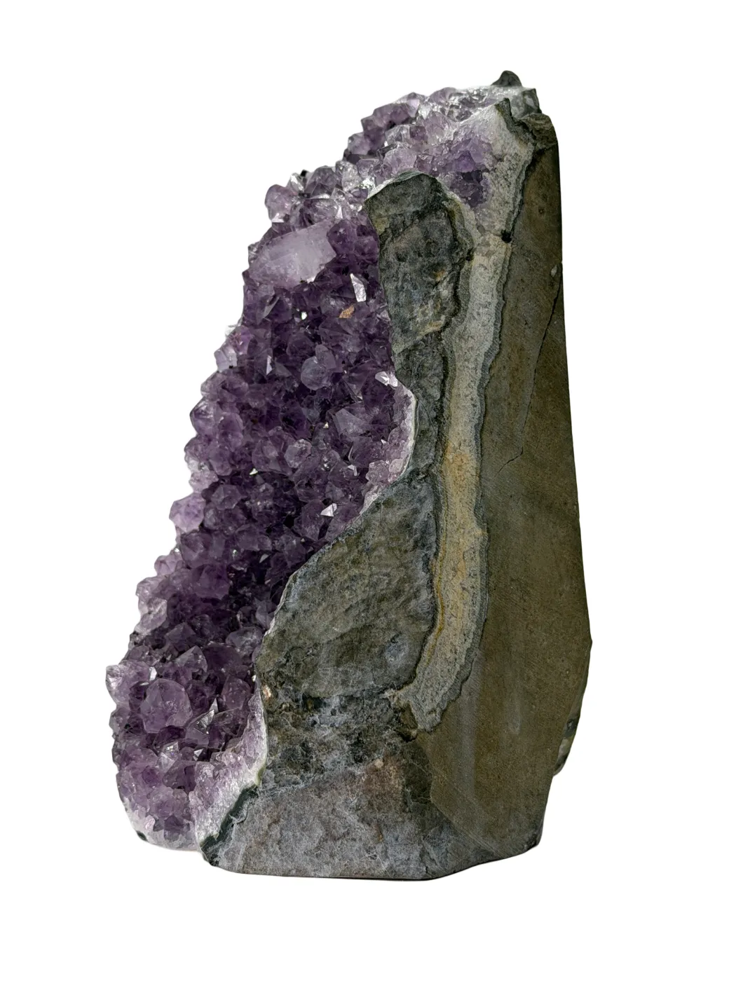 Prachtige natuurlijke amethist cut base uit Brazilië. Deze steen is volledig onbewerkt gebleven en alleen aan de onderzijde geslepen, zodat hij stevig rechtop kan staan. Hierdoor blijft de natuurlijke vorm van de amethist mooi behouden.