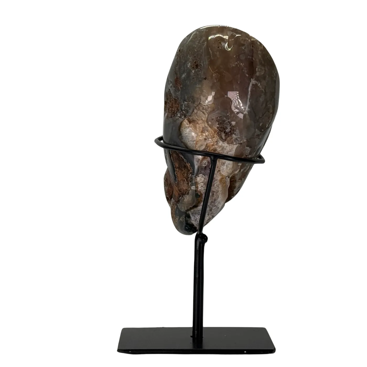 De steen is volledig gepolijst, waardoor de natuurlijke structuren, patronen en kleuren van de amethist en agaat prachtig zichtbaar zijn.
