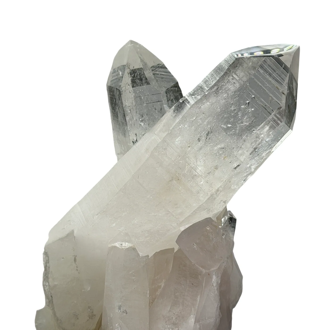Deze prachtige bergkristal cluster is natuurlijk gevormd en bevat schitterende kristalpunten met een heldere, zuivere uitstraling. De cluster is volledig onbewerkt en rechtstreeks afkomstig uit Brazilië, wat zorgt voor een authentiek en puur karakter.