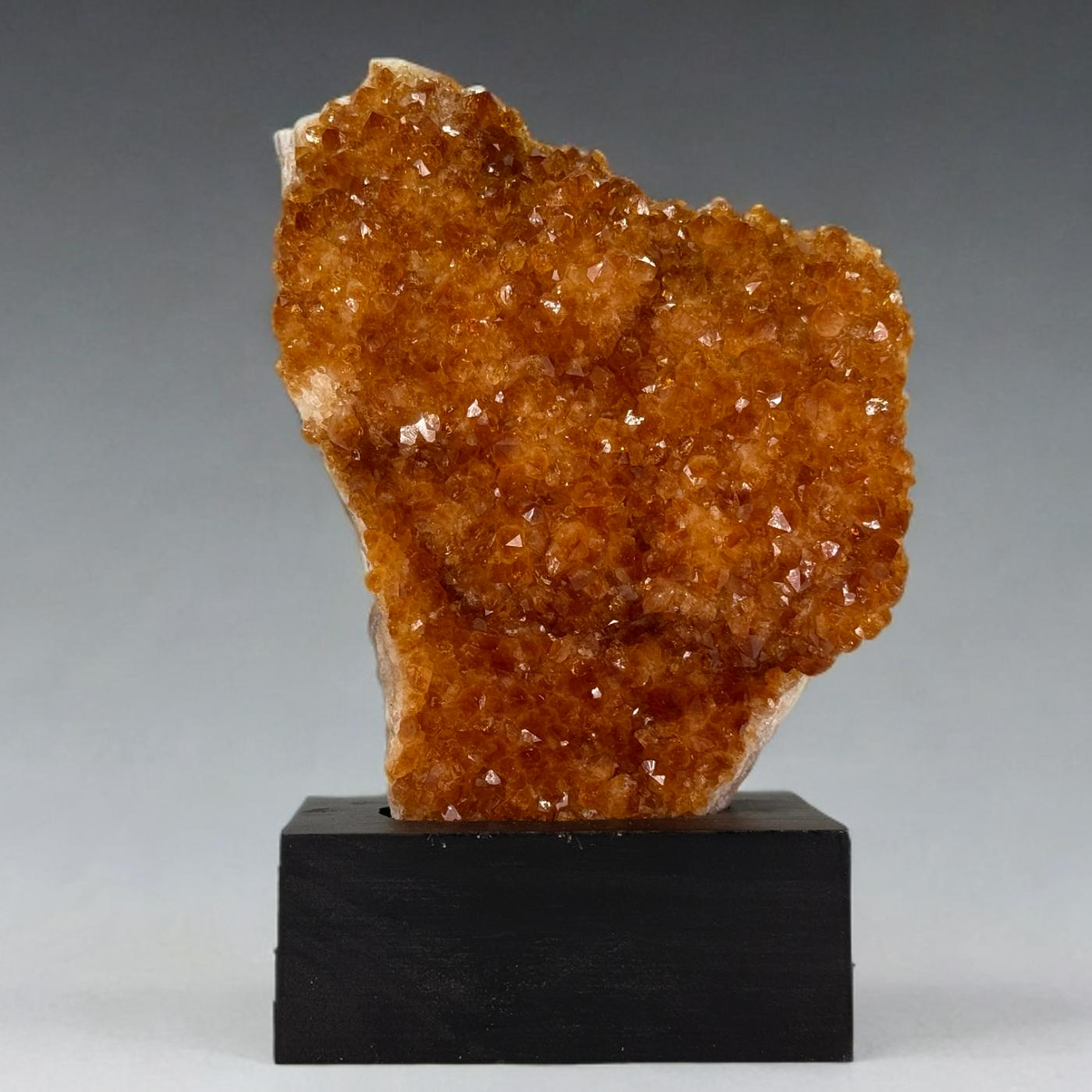 Prachtige citrien uit Brazilië, volledig gevormd uit één massief stuk. De steen is oorspronkelijk een amethist die door verhitting zijn warme, goudgele citrienkleur heeft gekregen.