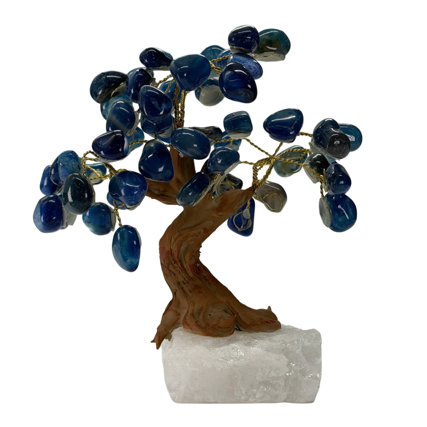 Edelsteen boompje op bergkristal voet (verschillende varianten)