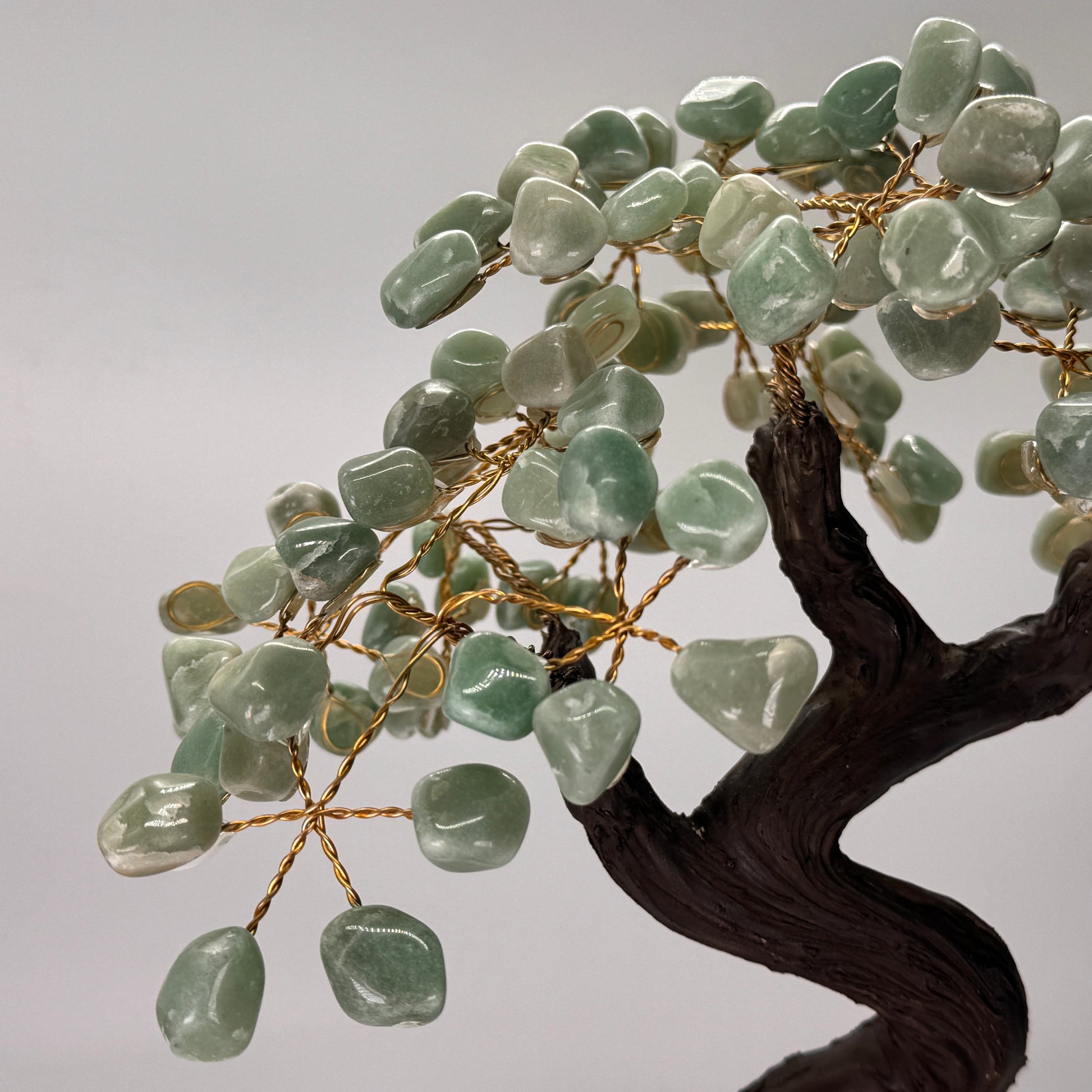 Prachtige edelsteenboom met groene kwartsbladeren, handgemaakt in Brazilië.
