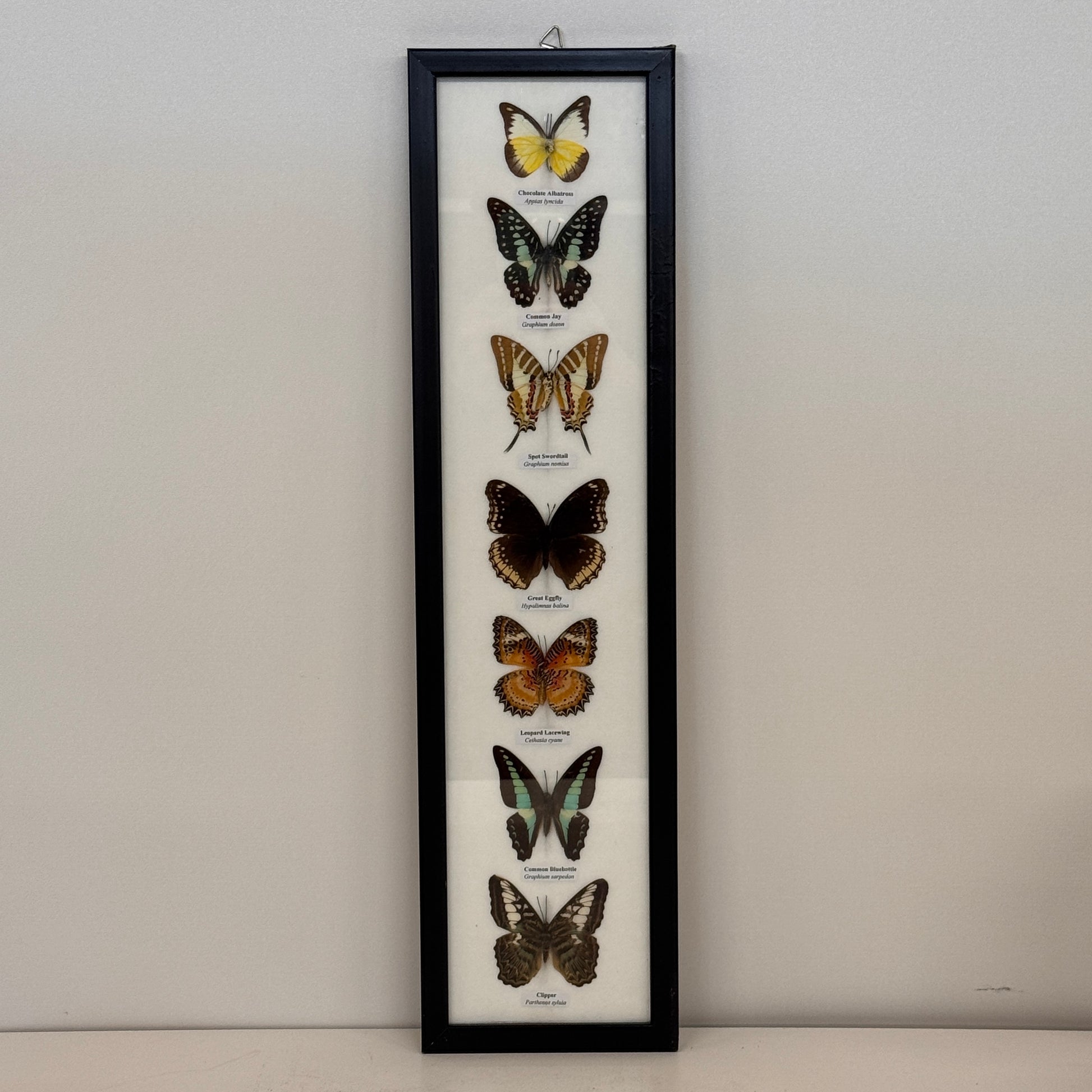 Ontdek deze stijlvolle zwarte vlinderlijst met 7 verschillende, zorgvuldig opgezette vlinders. Elke vlinder is voorzien van een naamlabel, zodat je precies weet welke soort je bewondert. Een uniek natuurkunstwerk dat direct sfeer toevoegt aan je interieur, perfect voor thuis, kantoor of als bijzonder cadeau voor natuurliefhebbers.