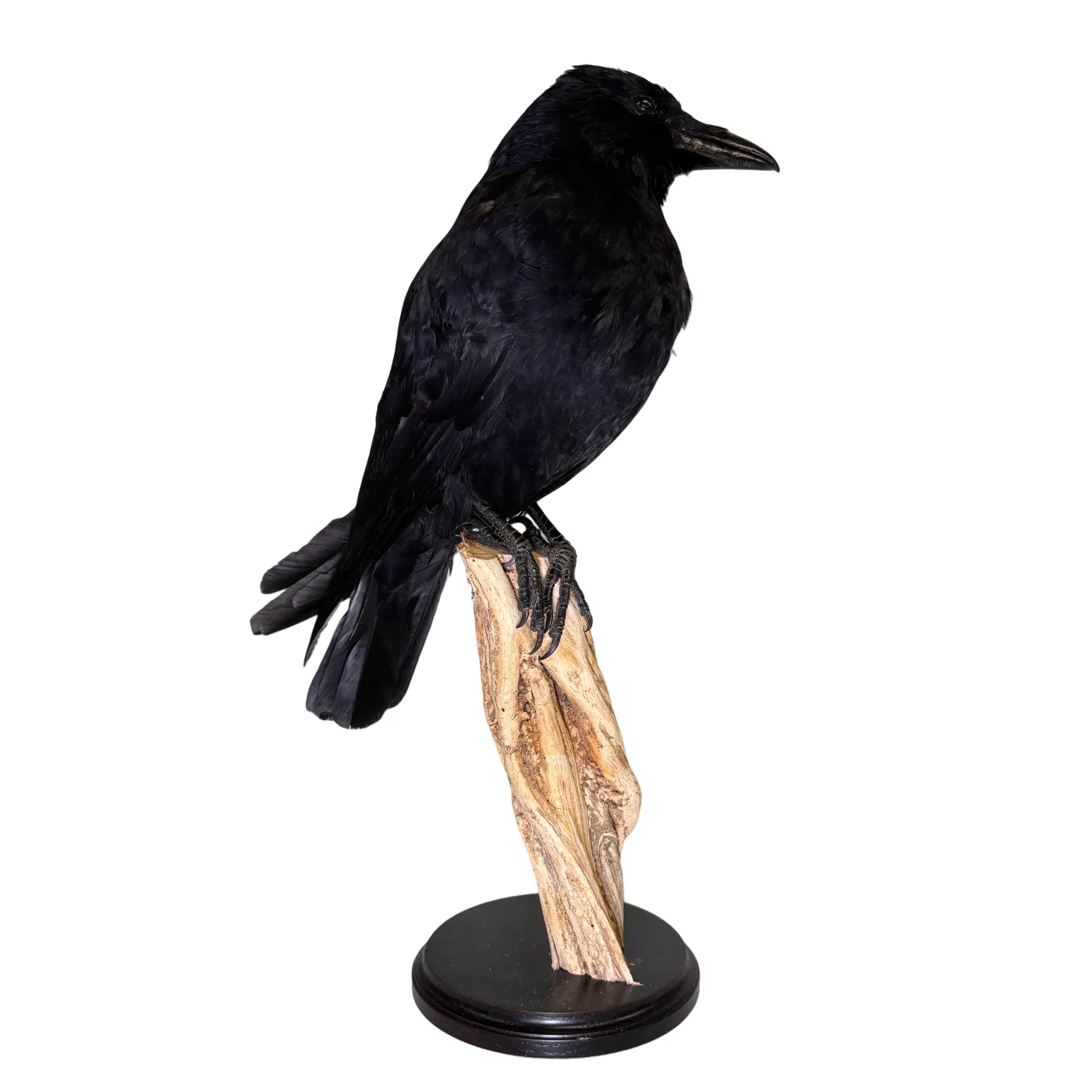 Prachtexemplaar: Opgezette Kraai op Houten Voet