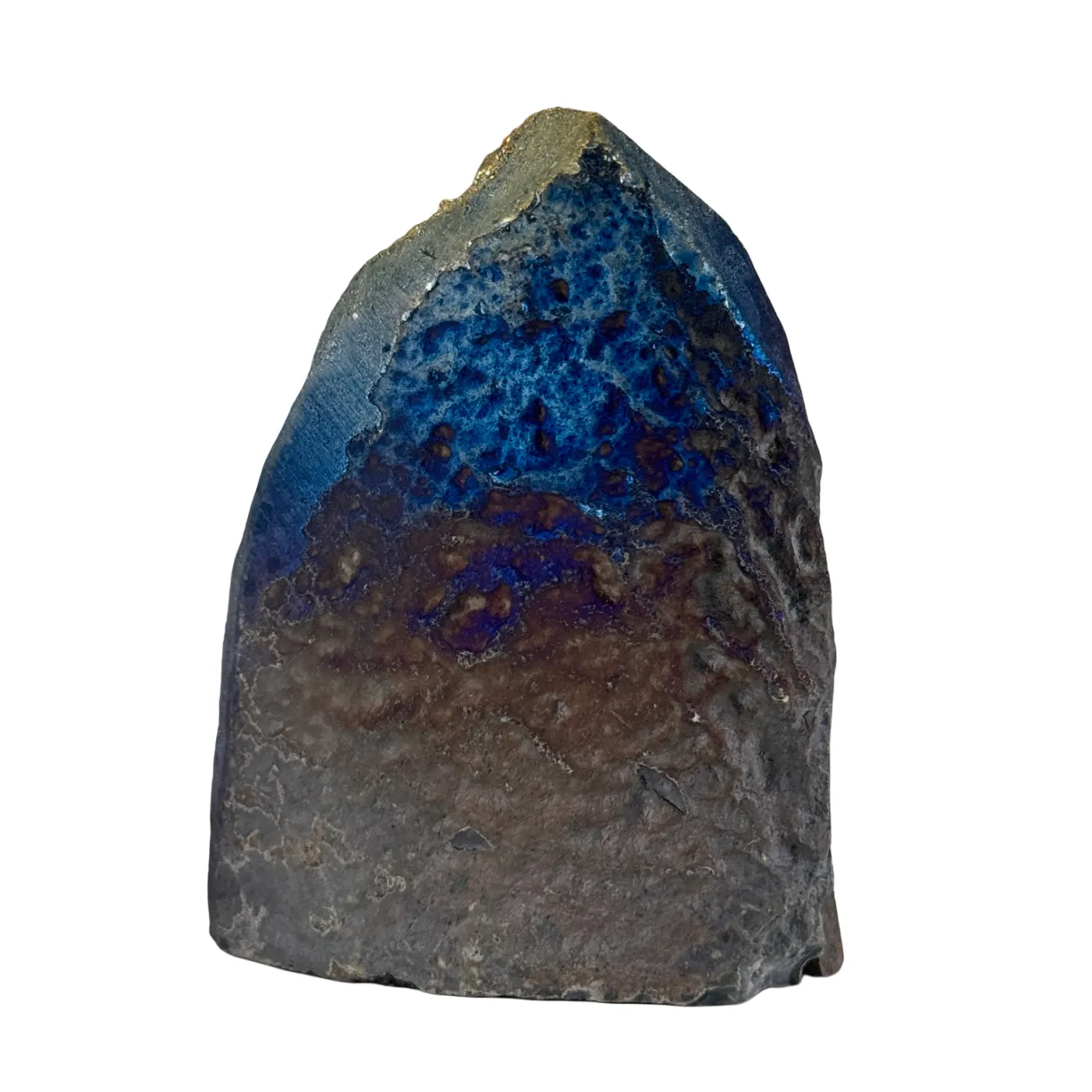Elke cluster heeft een unieke glans en kleurenspel, wat het een opvallend en decoratief stuk maakt voor in huis, kantoor of spirituele ruimte.