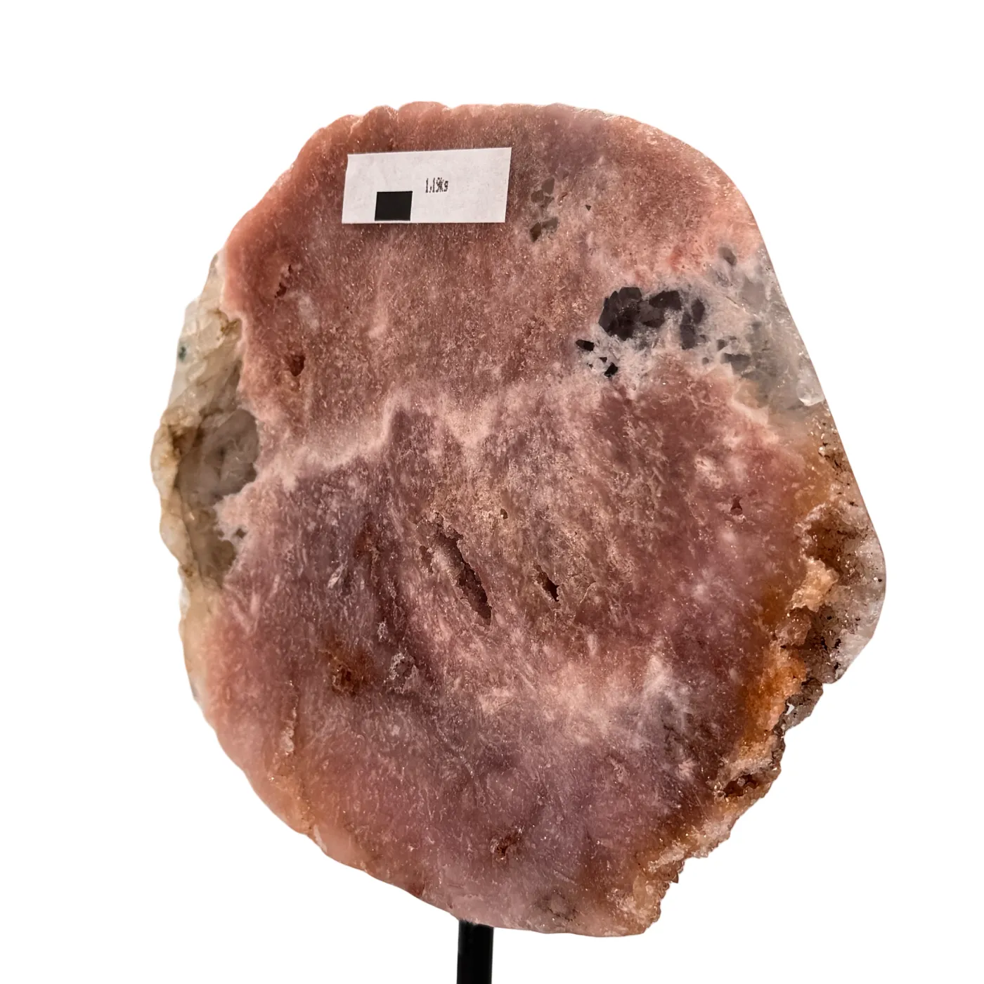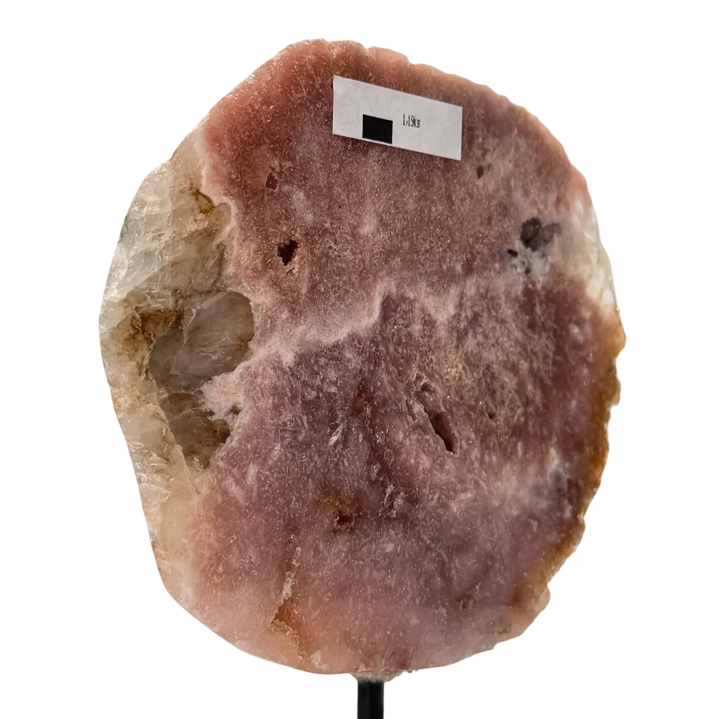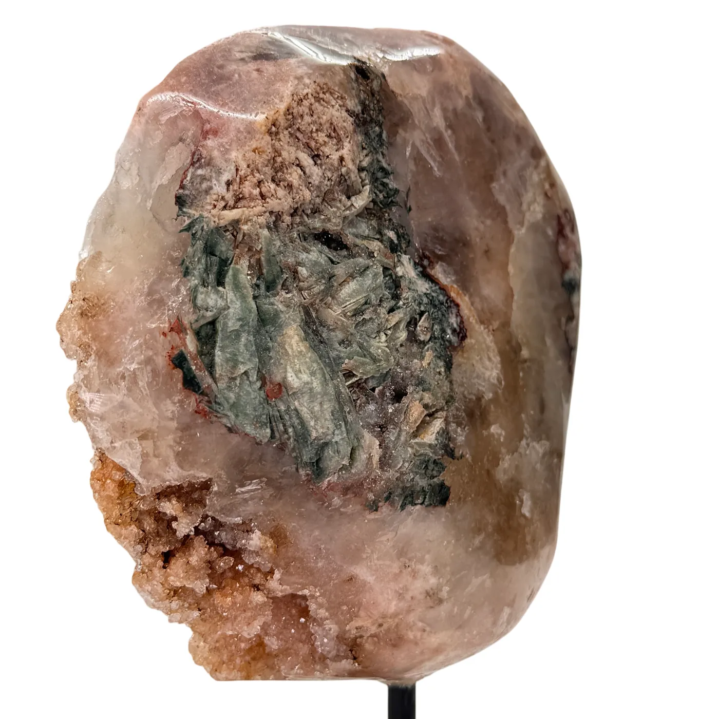 Voeg een vleugje luxe en sereniteit toe aan uw interieur met deze prachtige Roze Amethist, op een elegante zwarte metalen standaard. De voorkant van de steen is zorgvuldig gepolijst, waardoor de schitterende druzy-kristallen en natuurlijke kleurpatronen prachtig naar voren komen.