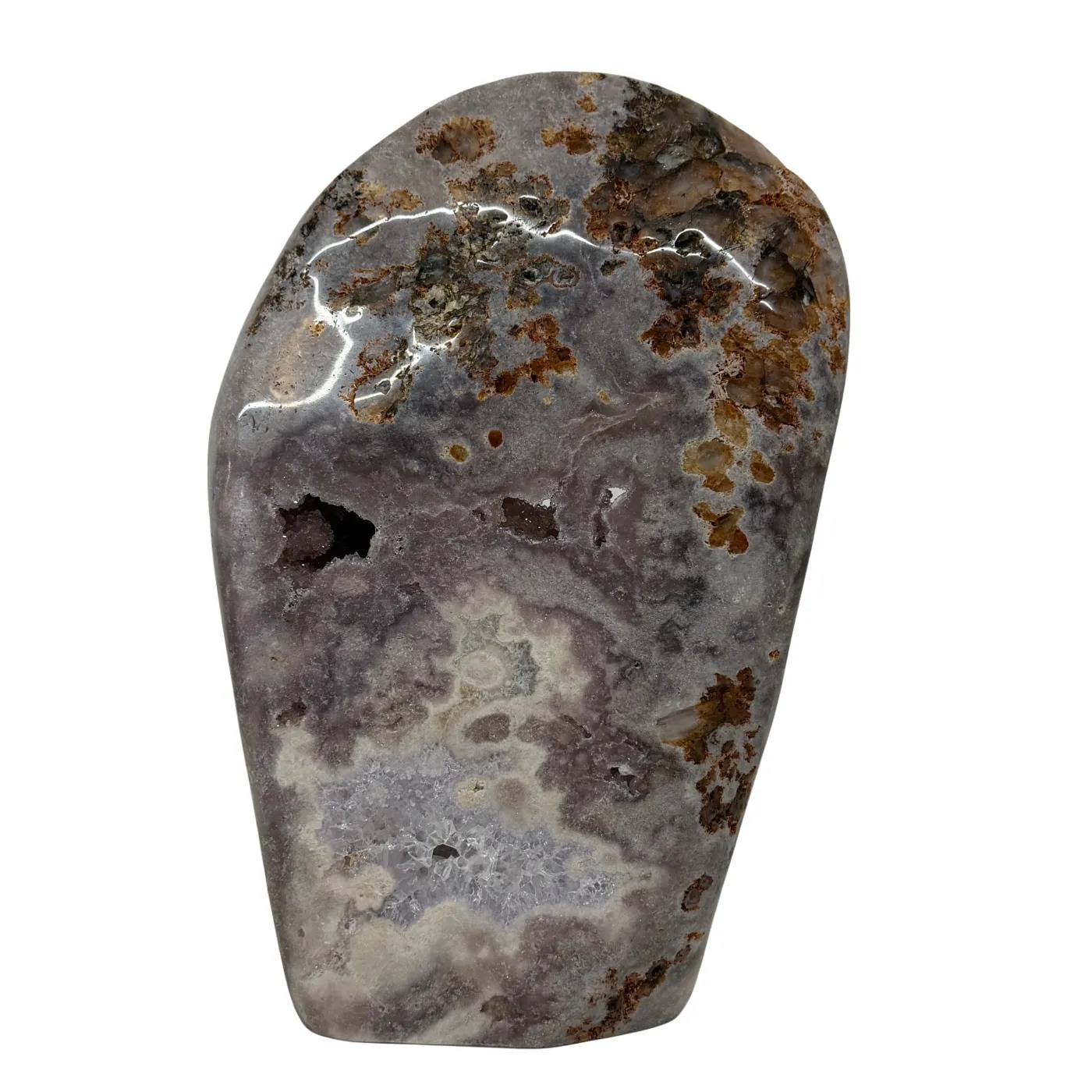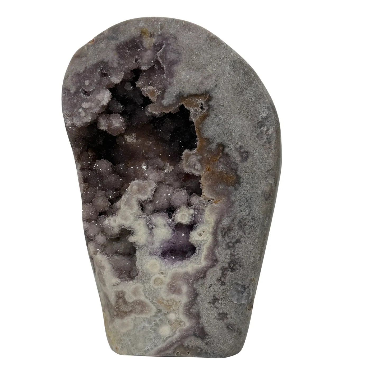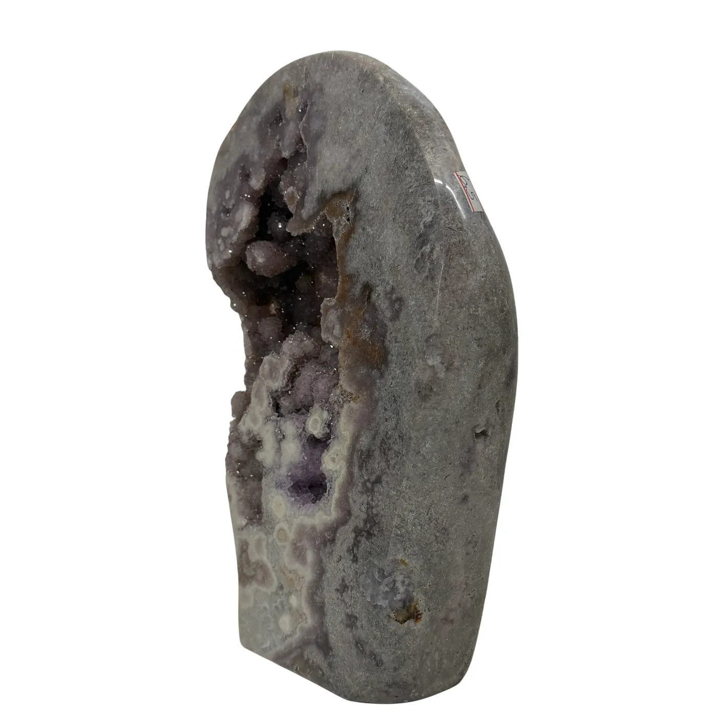 Deze prachtige roze amethist sculptuur is afkomstig uit Brazilië en vakkundig gepolijst. Door de hoogwaardige polijsting komen de natuurlijke kleuren, structuren en kristallagen van de steen extra mooi naar voren.