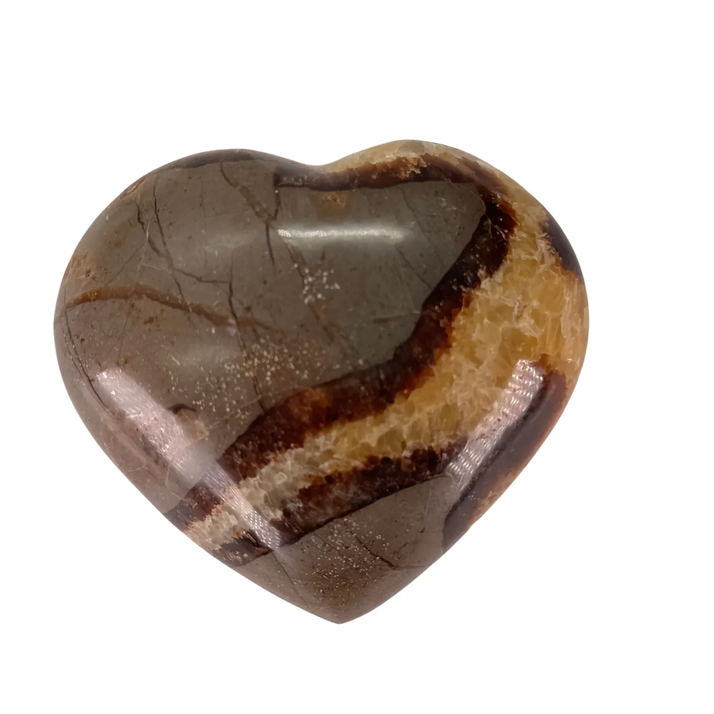 Prachtig gepolijst hart van septarie, een unieke natuurlijke steen afkomstig uit Madagaskar.