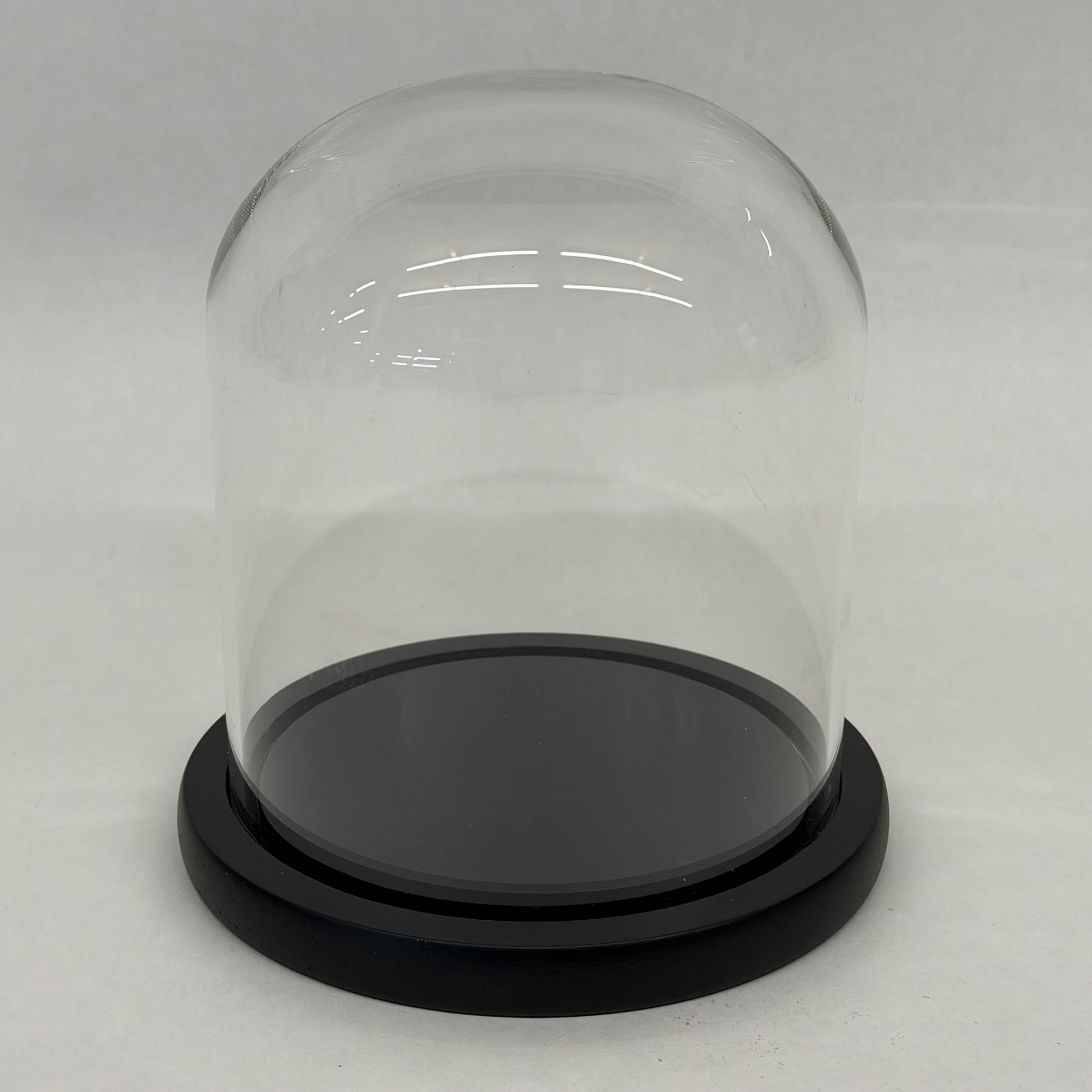 Deze stijlvolle glazen stolp is gemaakt van écht helder glas en geplaatst op een natuurlijke houten voet. Met een totale hoogte van 13 cm en een breedte van 12 cm is deze stolp perfect voor het presenteren van kleinere objecten.