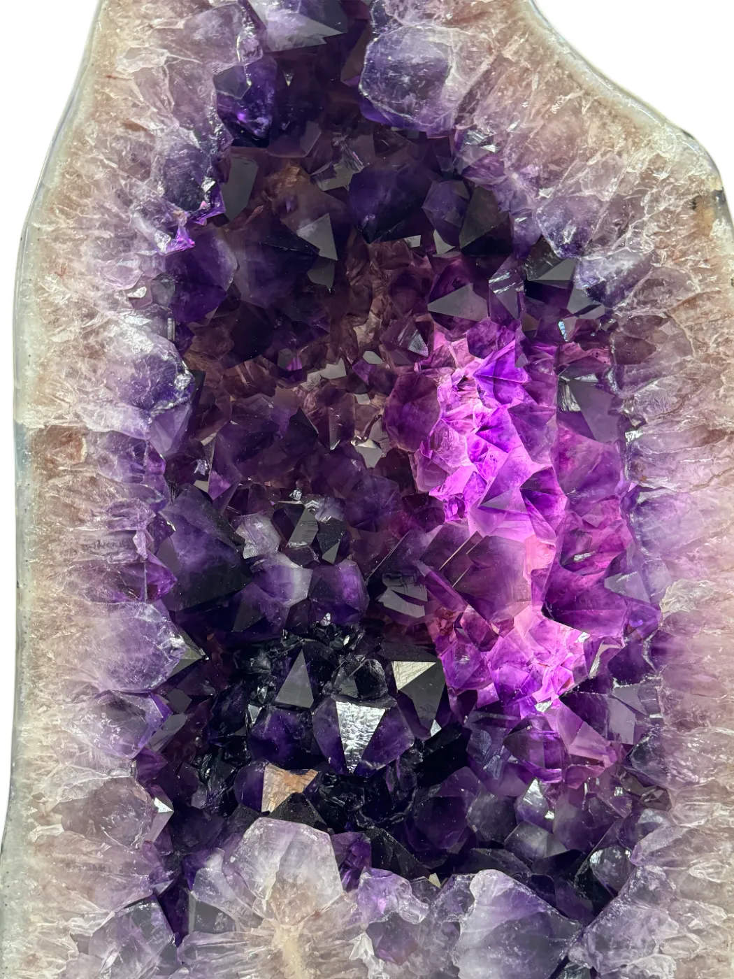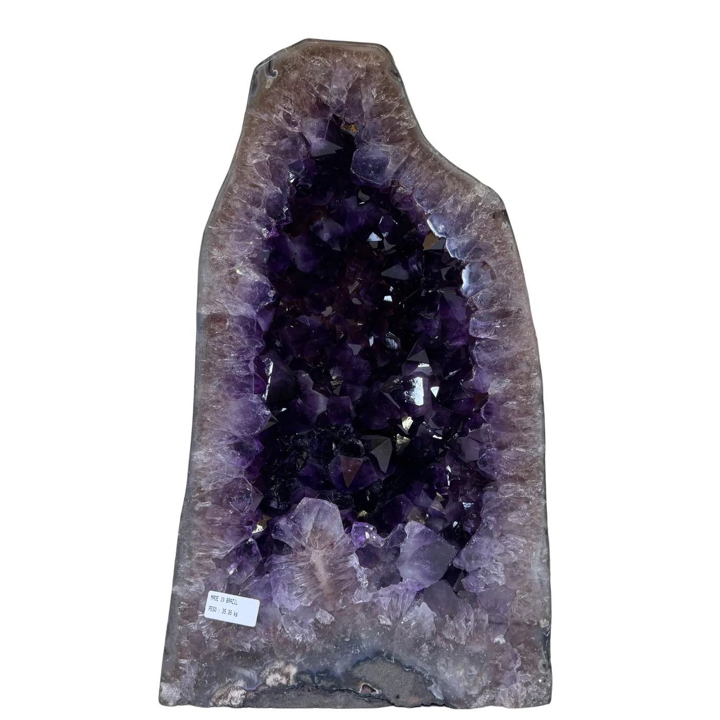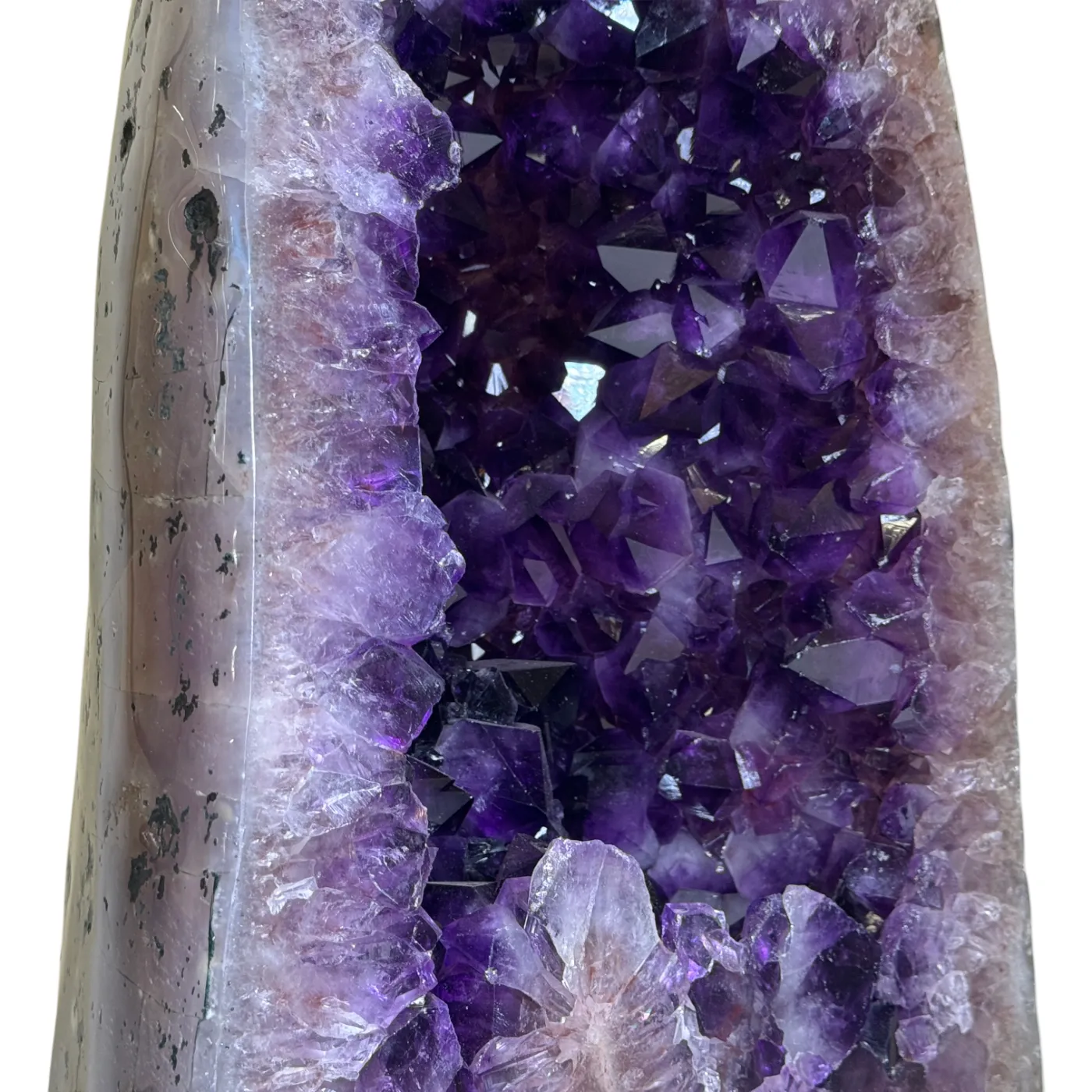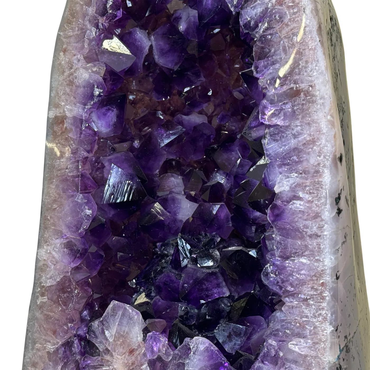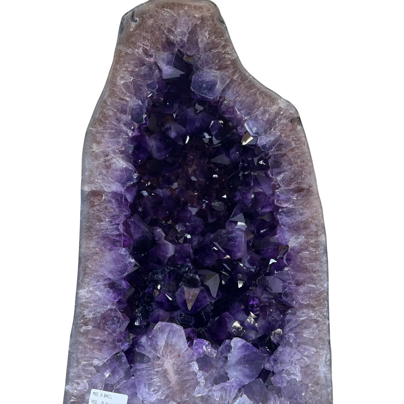In het midden bevindt zich een diepe opening met grote, dieppaarse amethistpunten. De kathedraal bestaat uit één massief stuk, zonder gesteente aan de buitenkant, volledig uit amethist en kwarts.